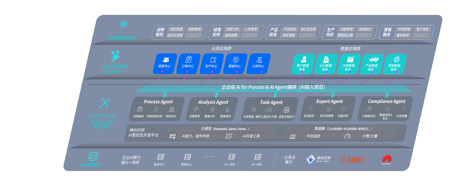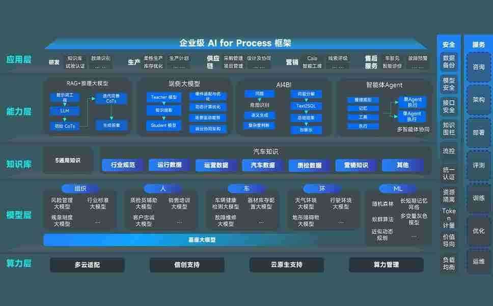 端到端的一站式AI工作空间深度融合了从企业战略规划到日常经营的全流程业务板块,,定向解决车企内部领域多、、部门多、、、链条长、、、、场景碎片化等难题,,,支持车企快速构建以AI为核心的生产力写作体系,,,,实现任务执行与AI能力的无缝集成与交互